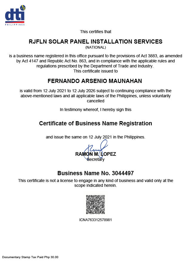 RJFLN Solar Installation Services & Maintenance for your home and business! Contact us for more information and quotations.Member of Super Max Solar